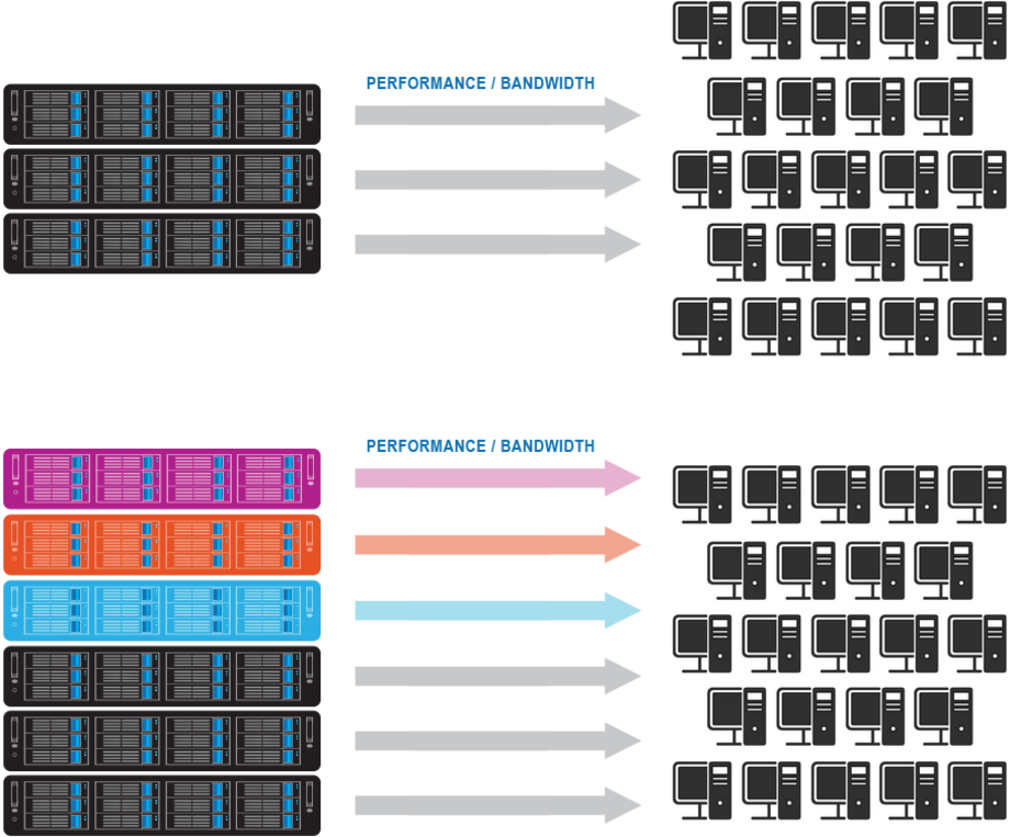 Increase the total system bandwidth and performance as you increase your storage.